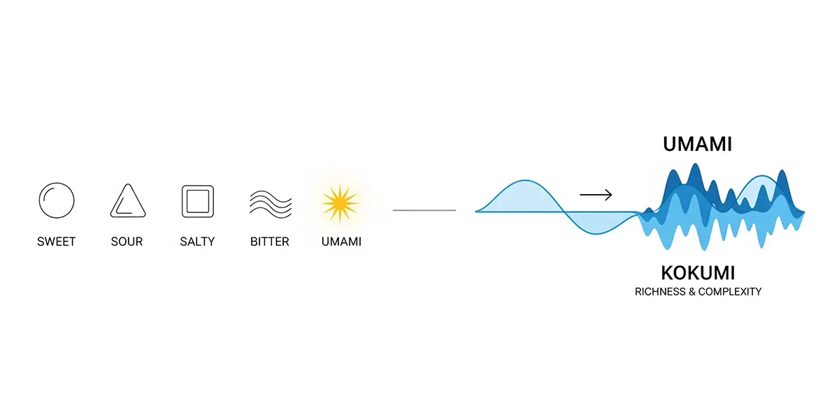 Explain that mastering authentic savory flavor requires balancing both elements. Umami provides the initial savory impact, while kokumi builds body, depth, and a memorable, lingering finish. This holistic approach is what separates a basic flavor from a complete culinary experience.