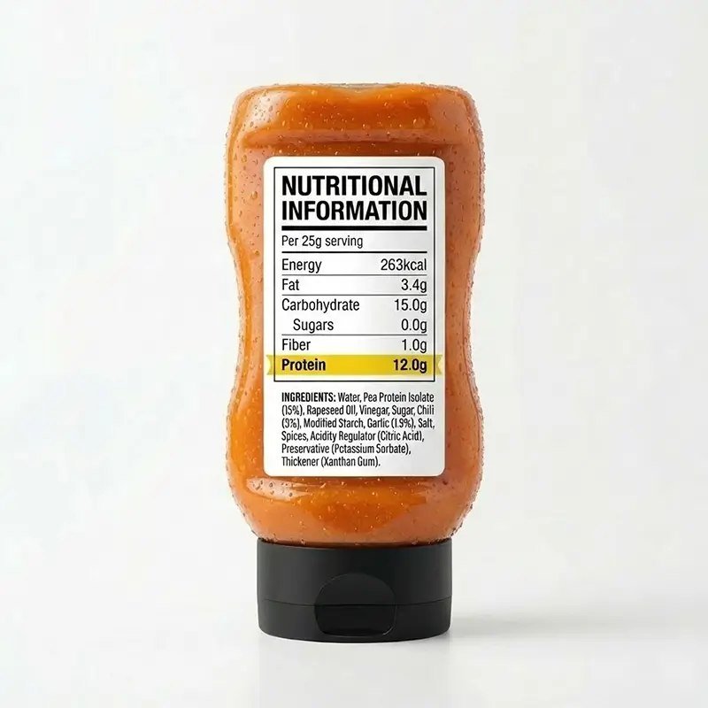 RUIKELAI Sriracha Protein Mayo is a revolutionary functional condiment designed to bridge the gap between “plant-based ethics” and “sports nutrition.” Unlike traditional vegan mayonnaises which are often nutritionally void (high fat, low protein), our proprietary Pickering Emulsion technology allows us to suspend 12g of Non-GMO Pea Protein Isolate per 100g without the gritty texture typically associated with plant proteins.